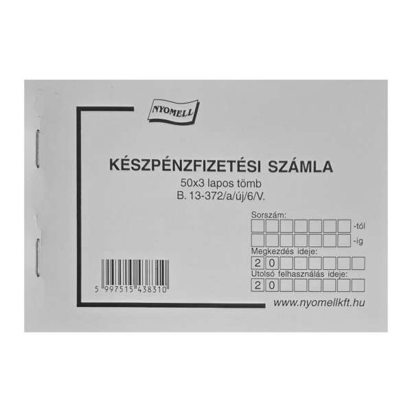 B.13-372/V/1 2008-AS KÉSZPÉNZFIZETÉSI SZÁMLA 1 ÁFÁS, 50*2 LAPOS, A/5,