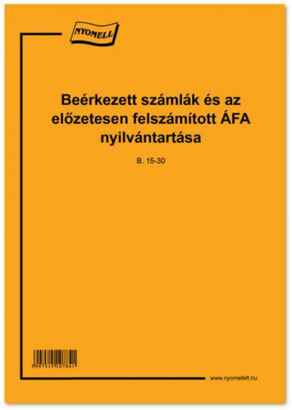 B.15-30 BEÉRKEZETT SZÁMLA-ÉS ELŐZETESEN FELSZÁMÍTOTT ÁFA NYILVÁNTARTÁS