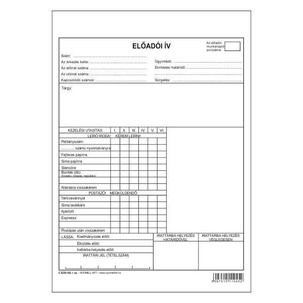 C.5230-315 ELŐADÓI MUNKANAPLÓ, ÁLLÓ, 20 LAPOS, A/4