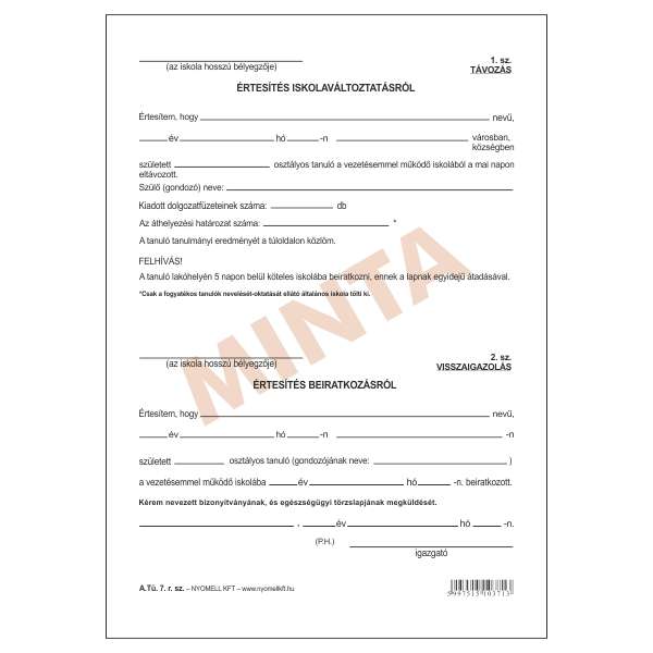 A.TÜ 7 ÉRTESÍTÉS ISKOLAVÁLT.