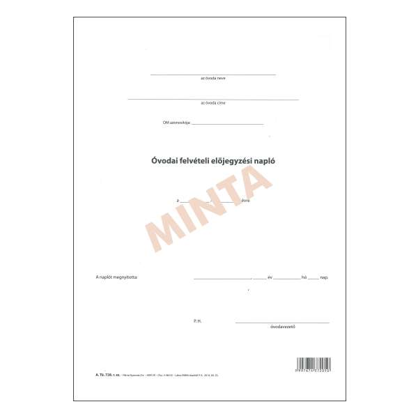 A.TÜ 728 ÓVODAI FELV.ELŐJEGY.NAPLÓ (KÜLÍV)