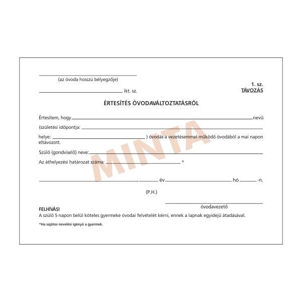A.TÜ 730 ÉRT. ÓVODAVÁLTOZTATÁSRÓL