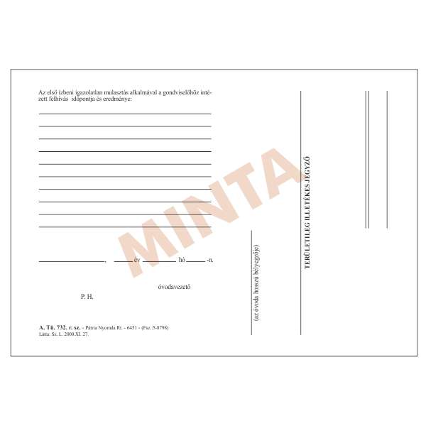A.TÜ 732 ÉRT.IGAZOLATLAN ÓVODAI MULASZTÁSRÓL