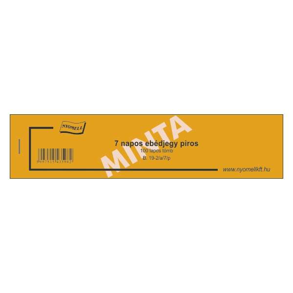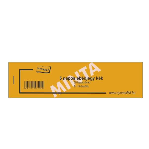 B.19-2/A/5/K EBÉDJEGY KÉK 5 NAPOS; 100 LAPOS TÖMB; 175X62 MM, B.19-2/A/5/K, KÉK