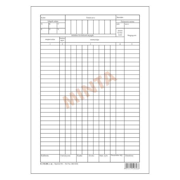 B.318-205 ÉLELMEZÉSI ANYAG KISZABÁSI ÉS KIVÉT. BIZONYLAT I., ÁLLÓ, 2 O., A/4